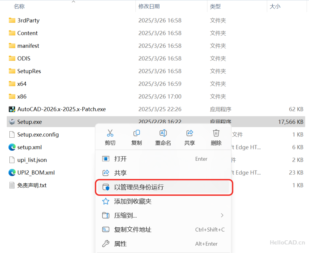 - 解压完成后,进入解压后的文件夹,找到名为 “Setup.exe” 的文件 。 如图 2 所示,右键单击 “Setup.exe”,选择 “以管理员身份运行” 。 这一步非常关键,若不以管理员身份运行,可能会因权限不足导致安装失败。