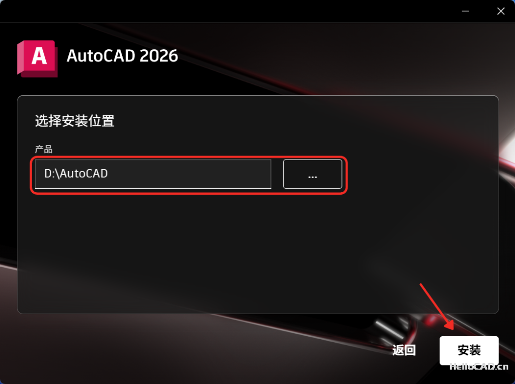 在 “安装位置” 页面,如图 4 所示,软件默认将 AutoCAD 2026 安装到系统盘(通常是 C 盘)的 “Program Files\Autodesk\AutoCAD 2026” 路径下。如果您希望安装到其他磁盘分区,可点击 “浏览” 按钮自定义安装路径 。例如,在 D 盘新建一个名为 “AutoCAD 2026” 的文件夹,然后选择该文件夹作为安装路径 。选择好安装位置后,点击 “安装” 按钮。