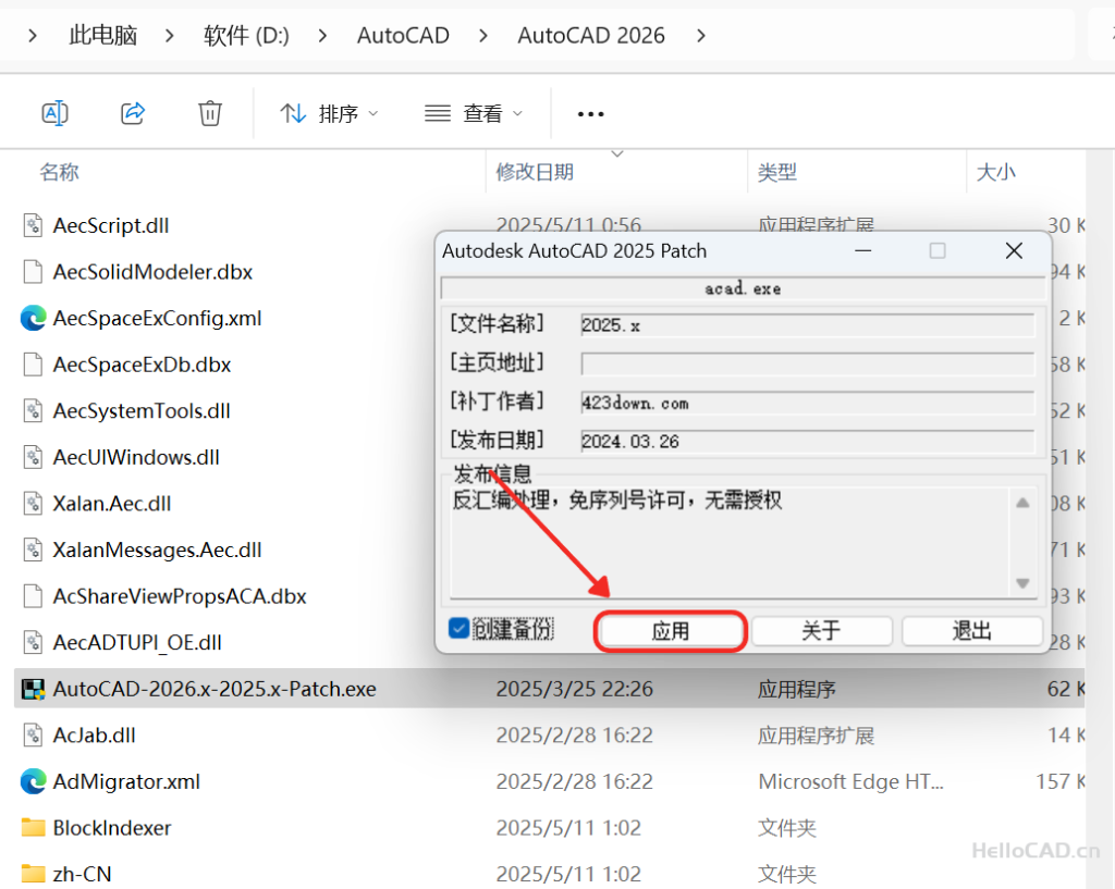 - 点击破解软件的应用:破解软件启动后,会弹出相应的程序窗口,如图 10 所示,在该窗口中点击 “应用” 按钮 。